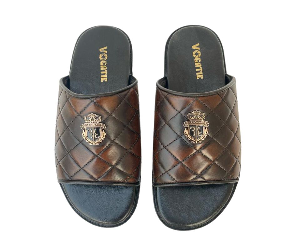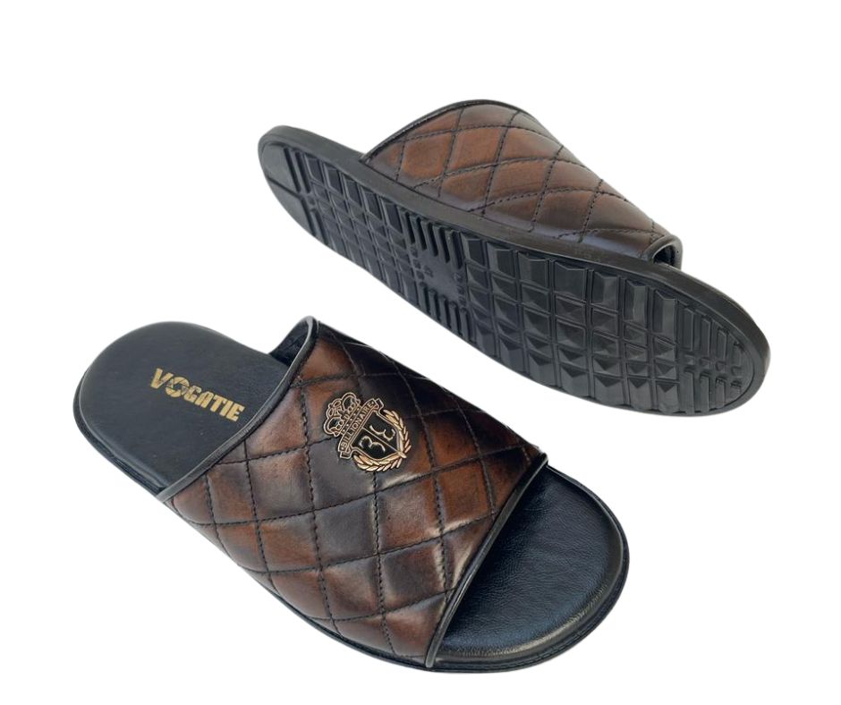 Indulge in a refined blend of comfort and class with our Double-Shaded Quilted Slippers, tailored for those who appreciate understated luxury. Featuring a premium quilted leather upper in a rich, dual-tone finish and accented with a golden crest emblem, these slippers bring an elevated touch to your casual wear. The plush, cushioned insole delivers exceptional comfort, while the lightweight yet durable sole makes them ideal for lounging, casual outings, or resort-style relaxation.